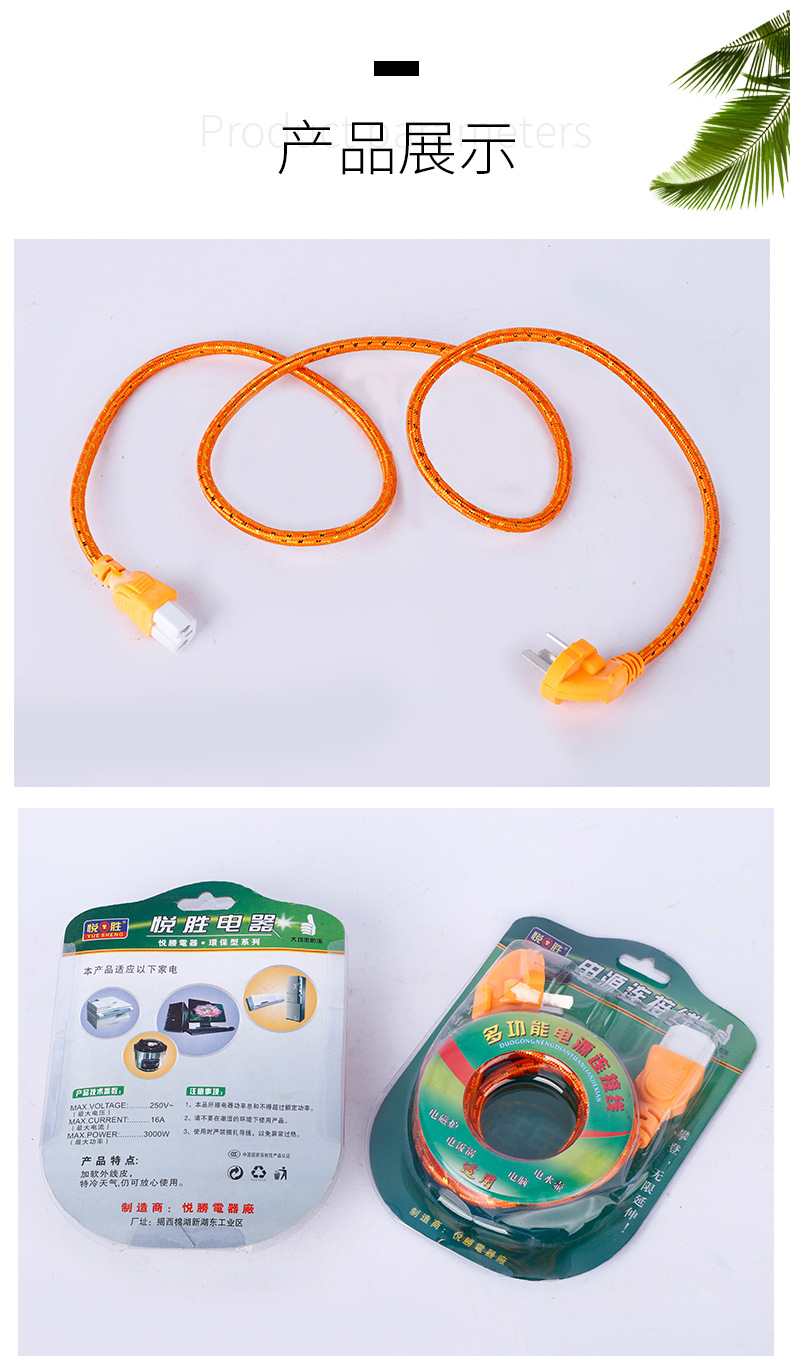 主要生产 各种防水排插、电源转换器、USB 插板、定时插板、各种地拖、插头、电源线等电器配件。